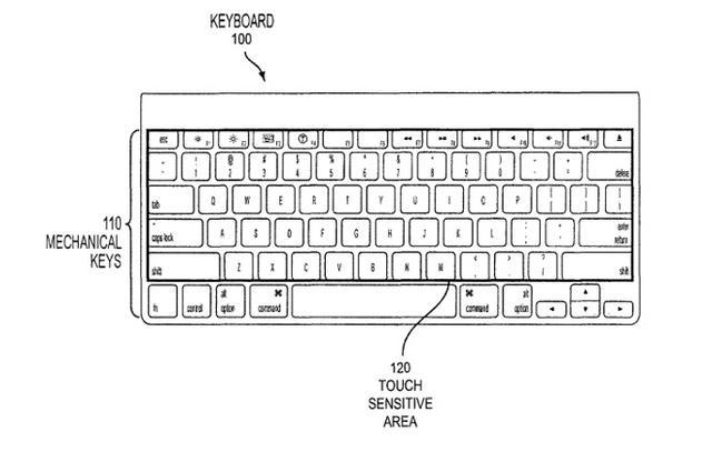 A future keyboard for a Mac may offer touch-sensitive keys on top of mechanical switches, a feature that could effectively turn the keyboard surface into a simulated trackpad.