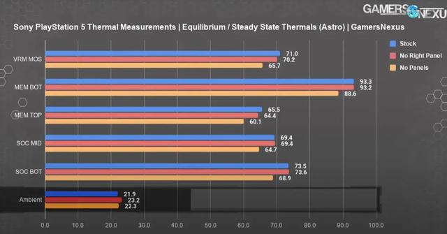 Una aparente solución para rebajar la temperatura unos 5 grados, de acuerdo al análisis de GamersNexus, es la de retirar los paneles laterales. Retirando ambos las temperaturas bajan unos 5 grados en todos los componentes. Sin embargo, se trata de algo perjudicial para la consola, pues la cantidad de polvo y suciedad que entra al sistema con un efecto potencial muy negativo es mucho mayor.