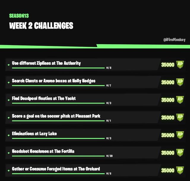 Este último hallazgo en cuestión ha sido llevado a cabo por el minero de datos conocido como iFireMonkey, quien lanzaba una publicación a través de su cuenta de Twitter que nos permitía ver qué planes tienen los responsables de Fortnite para la semana que viene. A continuación, os dejamos con la lista de los mencionados retos: