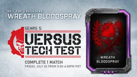 De este modo, indicaremos que en España los servidores de la beta de Gears 5 se abrirán a partir de las 19:00 de mañana 26 de julio -aunque esta debería aparecer ya como disponible para llevar a cabo la descarga-, y aquellos que logren estar despiertos durante la madrugada del paso al 27 de julio, específicamente de las 02:30 a las 03:30, podrán obtener la recompensa exclusiva ‘Wreath Bloodspray’ por disputar una partida multijugador. En la siguiente imagen podéis apreciar la recompensa en cuestión: