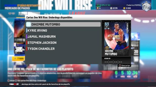 - Mutombo Scores! (250 EXP): Anota 10 puntos con Dikembe Mutombo Playoff Underdogs en un único partido de Ilimitado.