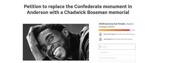 Y la segunda, tiene que ver con una cuestión que está muy candente en la sociedad estadounidense. Los fans han organizado una petición en Change.org para que se cambie un monumento en memoria de un soldado confederado que se encuentra en su lugar de nacimiento, Anderson, Carolina del Sur, por una estatua del recién fallecido. La petición ya ha sido firmada por casi 30.000 personas, y responde a la dedicación que Boseman ha tenido siempre hacia la causa racial.