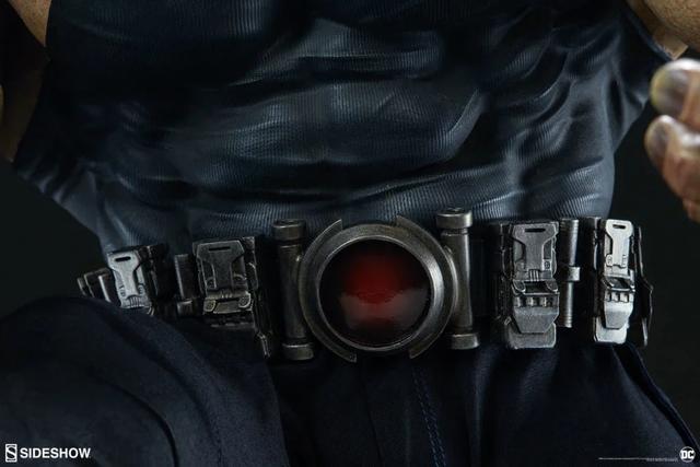 Sideshow Collectibles se enorgullece ahora mostrando el resultado final que los mayores fans del universo de DC Comics estaban esperando. Bane se luce en una impresionante nuevo pieza a escala 1/4 con todo lujo de detalles perfectamente reconocibles del personaje, como su singular máscara así como los conductos que el personaje a adherido a su cuerpo y por el cual se inocula los poderosos esteroides. El descomunal tamaño del personaje, hace que la figura alcance la friolera de casi los 60 centímetro de altura. Considerable sobre todo si tenemos en cuenta que una de las extremidades del personaje se mantiene cerca de pie en una peana sin gran altura.