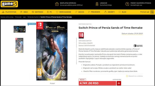 Tal y como se ha percatado el usuario de Reddit RaginDagger22, hay una tienda serbia que en una historia de Instagram hizo mención a una versión de Prince of Persia: Las Arenas del Tiempo Remake para Switch. Tras meterse en la propia web de esta tienda de videojuegos de Suecia, efectivamente, aparecía una versión para la consola híbrida del juego de Ubisoft. De hecho, vosotros mismos podéis verlo visitando la página de la tienda a través de este mismo enlace.