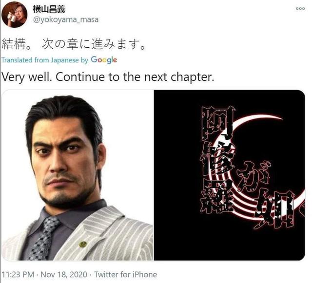 Tal y como recogen desde TechRaptor, ha sido uno de los productores de la saga Yakuza quien ha puesto un tweet, que posteriormente ha retirado, en el que deja las primeras pistas del futuro de Yakuza. Estas pistas incluyen un texto que reza "muy bien. Pasamos al siguiente capítulo", así como dos imágenes: una de ellas del personaje Masaru Watase (Yakuza 5 y Yakuza: Like a Dragon) y un logo que correspondería al nuevo Yakuza: Like an Asura. Podéis ver el tweet por vosotros mismos a continuación.