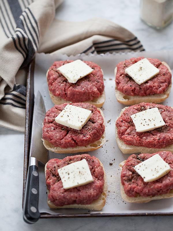 It all looks way too simple to taste as delicious as it does. The secret is the pats of butter that melt down into the burger meat co-mingling with worcestershire sauce to create a juicy, lickable drip down each side of your cheering for the 49er’s gameface. (Please win. Please win.)