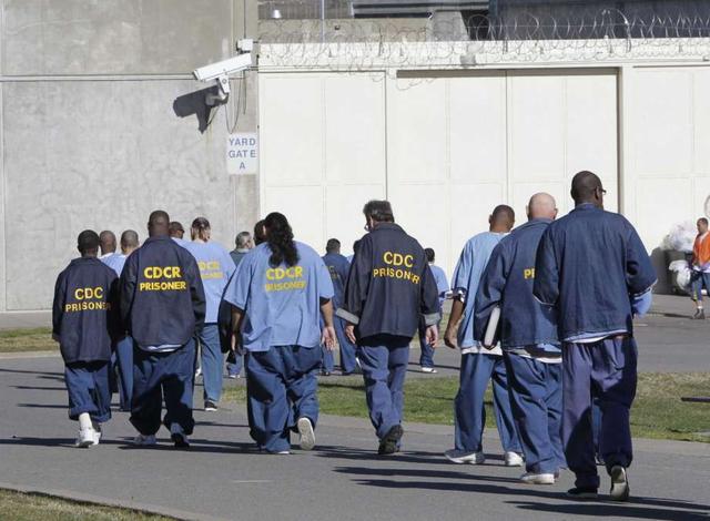 File - In this Feb. 26, 2013, file photo, inmates walk through the exercise yard at California State Prison Sacramento, near Folsom, Calif. California will reconsider life sentences for thousands of nonviolent ... more