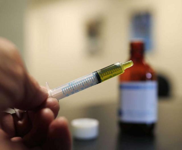 FILE - In this Nov. 6, 2017, file photo, a syringe loaded with a dose of CBD oil is shown in a research laboratory at Colorado State University in Fort Collins, Colo. The Coca-Cola Company says that it's "closely watching" the growth of the use of a non-psychoactive element of cannabis in wellness drinks. less