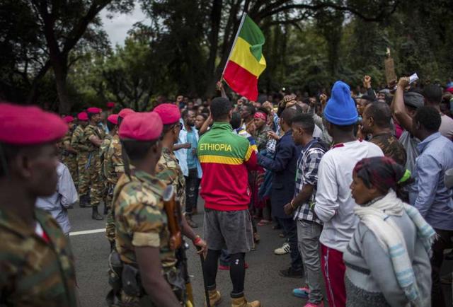 Ethiopian army soldiers attempt to control protestors from the capital and those displaced by ethnic-based violence over the weekend in Burayu, as they demonstrate to demand justice from the government in Addis ... more