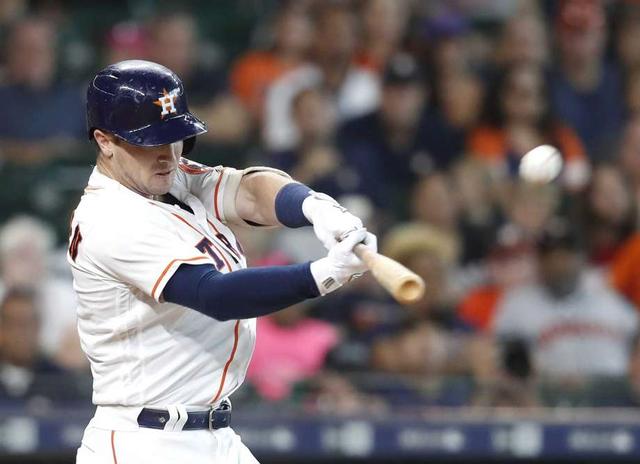 Houston Astros third baseman Alex Bregman (2) connects for a lead-off double in the bottom of the fifth inning against the Toronto Blue Jays at Minute Maid Park on Wednesday, June 27, 2018 in Houston. Photo: Elizabeth Conley, Houston Chronicle / ©2018 Houston Chronicle
