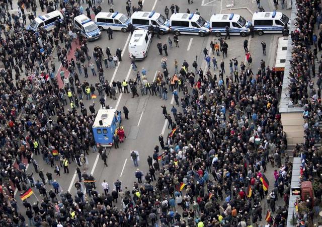 Police cars stand across the road as police separate leftist and nationalist demonstrators in Chemnitz, eastern Germany, Saturday, Sept. 1, 2018, after several nationalist groups called for marches protesting ... more