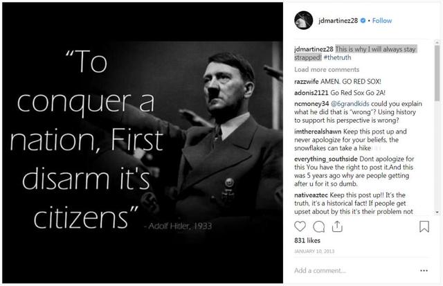 Former Astros outfielder J.D. Martinez answered for an Instagram post he made featuring a photo of Adolf Hitler.