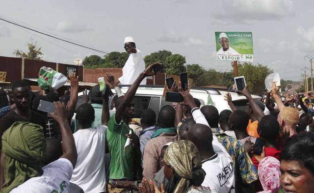 In this photo taken Monday, July 16, 2018, Soumaila Cisse, Opposition Presidential aspirant candidate of the Union for the Republic and Democracy party gestures during an election campaign rally in Yanfolila, Mali. As deadly attacks by extremists become more brazen in Mali, officials and citizens fear this month's presidential election will be at risk from growing insecurity. Photo: Baba Ahmed, AP / Copyright 2018 The Associated Press. All rights reserved.