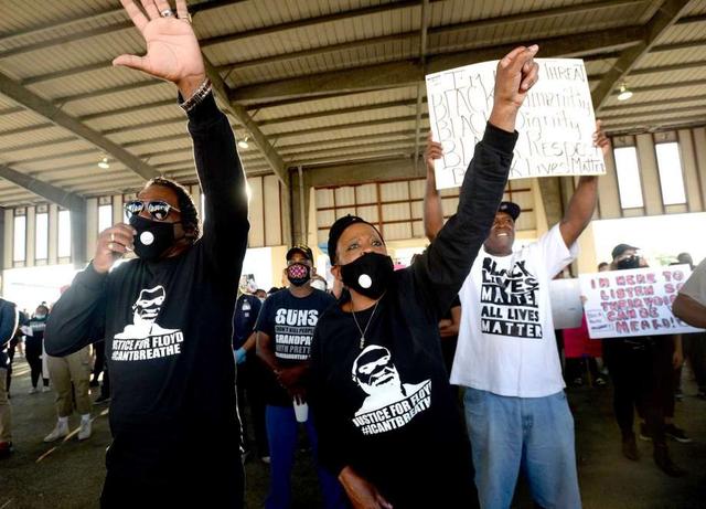 Participants join in a protest gathering for George Floyd at the pavilion in Port Arthur. The event was organized by the area NAACP. Photo taken Tuesday, June 2, 2020 Kim Brent/The Enterprise