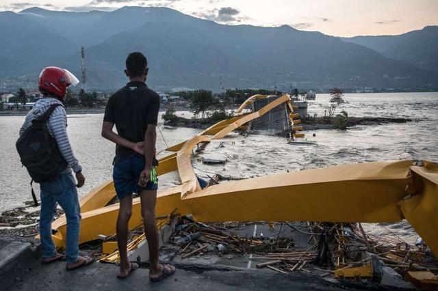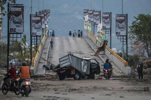 People view a bridge that has been destroyed by a tsunami, on October 01, 2018 in Palu, Indonesia. Over 844 people have been confirmed dead after a tsunami triggered by a magnitude 7.5 earthquake slammed into ... more