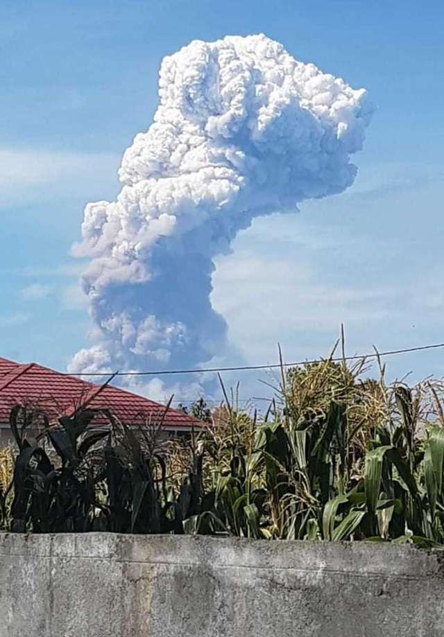 A giant plume of volcanic ash rises from Mount Soputan, Wednesday, Oct. 3, 2018, in the town of Tomohon, Northern Sulawesi, Indonesia. The volcano erupted Wednesday morning on the same central Indonesian island ... more