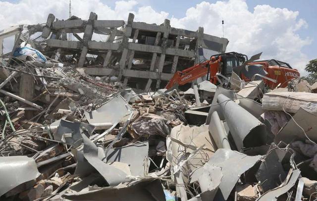 An earth remover works to clear debris from the collapsed Roa Roa hotel in Palu, Indonesia's Central Sulawesi on October 1, 2018. - The death toll from the Indonesian quake-tsunami nearly doubled to 832 but was expected to rise further after a disaster that has left the island of Sulawesi reeling. less