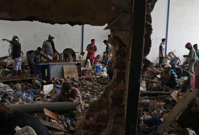 People scavenge for food inside an abandoned warehouse in an earthquake and tsunami-affected area in Palu, Central Sulawesi, Indonesia Indonesia, Wednesday, Oct. 3, 2018. Clambering over the reeking pile of ... more