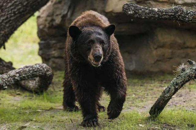 In this Wednesday, Aug. 29, 2018 photo, a black bear at the Houston Zoo walks through its new enclosure in Houston. North American black bears named Belle and Willow have more room to roam at the Houston Zoo. ... more