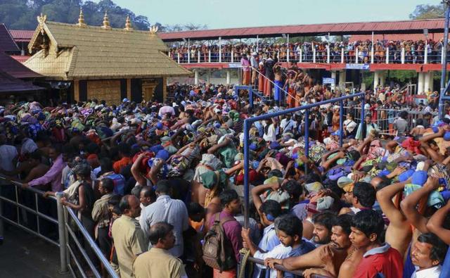 FILE - In this Dec. 1, 2015 file photo, Hindu worshippers stand in queues outside the Sabarimala temple, one of the world's largest Hindu pilgrimage sites, in the southern Indian state of Kerala. India's ruling ... more