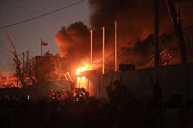 Protestors burn the municipal complex during protests demanding better public services and jobs in Basra, 340 miles (550 km) southeast of Baghdad, Iraq, Wednesday, Sept. 5, 2018.