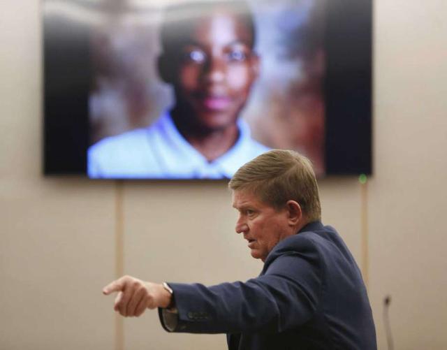 Lead prosecutor Michael Snipes points to the family of Jordan Edwards during his closing argument in the trial of former Balch Springs police officer Roy Oliver, who is charged with the murder of 15-year-old ... more