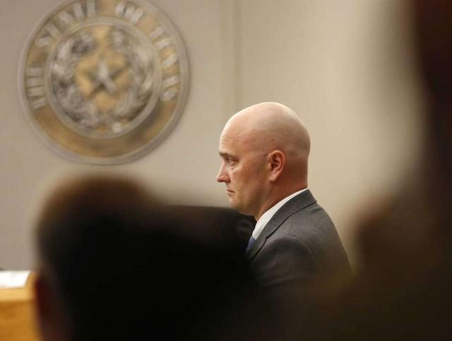 Defendant Roy Oliver, former Balch Springs police officer who is charged with the murder of 15-year-old Jordan Edwards, stands during the defense's closing arguments in his trial at the Frank Crowley Courts ... more