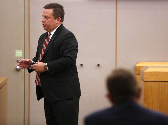 Lead prosecutor Michael Snipes gives a closing argument in the trial of former Balch Springs police officer Roy Oliver, who is charged with the murder of 15-year-old Jordan Edwards, at the Frank Crowley Courts Building in Dallas on Monday, Aug. 27, 2018. (Rose Baca/The Dallas Morning News via AP, Pool) less