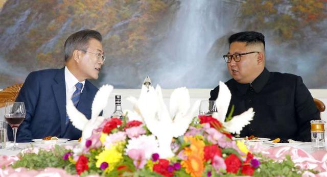 "We have agreed to make the Korean Peninsula a land of peace that is free from nuclear weapons and nuclear threat," Kim said at the guesthouse where Moon is staying. "The road to our future will not always be smooth and we may face challenges and trials we can't anticipate. But we aren't afraid of headwinds because our strength will grow as we overcome each trial based on the strength of our nation."