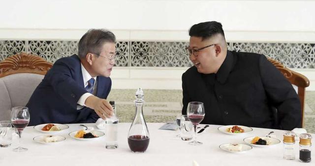 South Korean President Moon Jae-in, left, talks with North Korean leader Kim Jong Un at Okryu-Gwan restaurant in Pyongyang, North Korea, Wednesday, Sept. 19, 2018. Moon and Kim announced a sweeping set of ... more