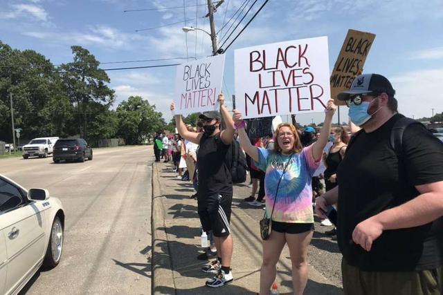 Some stopped for to-go pizza to fuel up to march in protest over the death of George Floyd, a black man who died after a white Minneapolis police officer held him down with a knee on his neck.