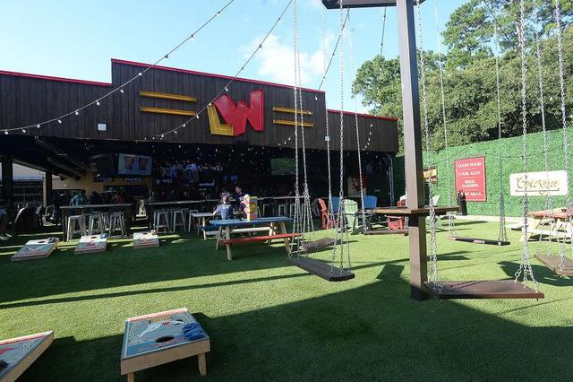 Customers socialize and enjoy the atmosphere at Little Woodrow's, which features an outdoor patio area with swings and games at one of Beaumont's newest establishments. Photo taken Thursday, July 18, 2019 Kim Brent/The Enterprise less