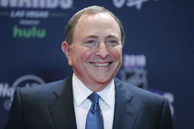 FILE - In this June 20, 2018, file photo, Gary Bettman, commissioner of the National Hockey League, poses on the red carpet before the NHL Awards in Las Vegas. Bettman was selected to the Hockey Hall of Fame. ... more
