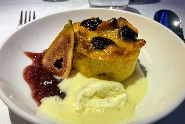 British Airways business class London-Oakland bread pudding with dried fig, clotted cream and strawberry jam. Talk about comfort food! Photo: Chris McGinnis