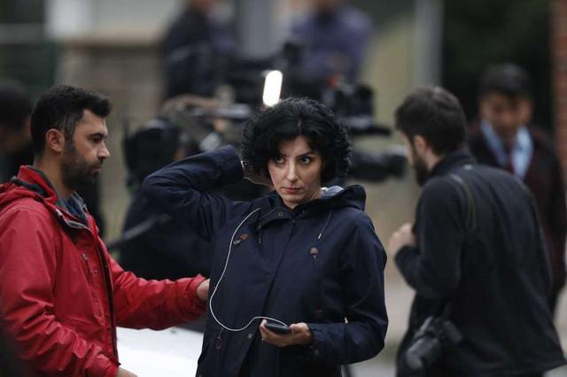 Members of the media report outside the Saudi Arabia's consulate in Istanbul, Thursday, Oct. 18, 2018. Turkish crime-scene investigators finished an overnight search of both residence and a second search of the consulate itself amid Ankara's fears that Saudi writer Jamal Khashoggi was killed and dismembered inside the diplomatic mission in Istanbul. less