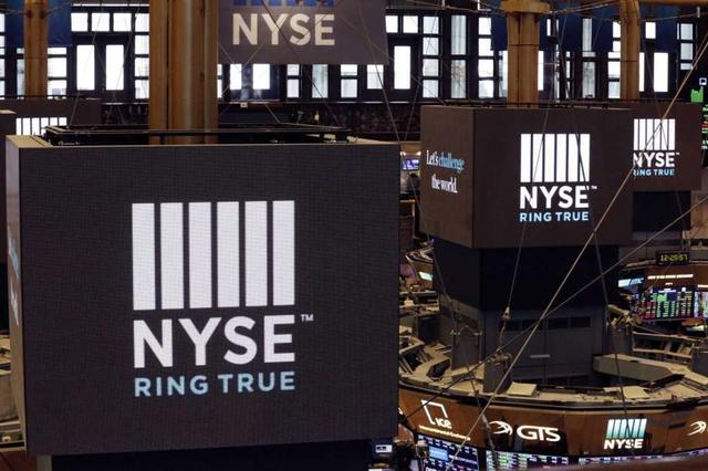 FILE- In this Aug. 21, 2018, file photo screens above trading posts on the floor of the New York Stock Exchange show the NSE logo. The U.S. stock market opens at 9:30 a.m. EDT on Tuesday, Sept. 4, 2018.