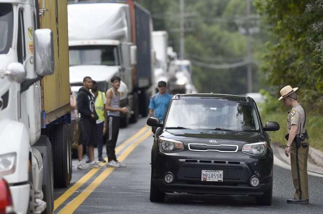 Maryland state police block the road that connects the industrial business park, where several people had been shot, in Harford County, Md, Thursday, Sept. 20, 2018. Authorities say multiple people have been ... more