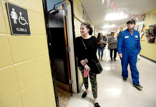 Tour goers make their way through Highland Park Elementary as Principal Sissy Yeaman leads them through the school, pointing out the many rooms and facilities needing upgrades during a tour of two Nederland ISD ... more