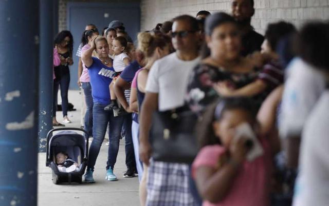 Residents stand in a block-long line outside a customer help center staffed by Columbia Gas of Massachusetts in Lawrence, Mass., Monday, Sept. 17, 2018. Dozens of homes were destroyed or damaged, a teenager was killed and dozens of people were injured in Lawrence, North Andover and Andover following a failure last week in the area natural gas delivery service. Federal officials say their investigation is partially focused on pressure sensors that were connected to a gas line that was being taken out of service shortly before the blasts. less