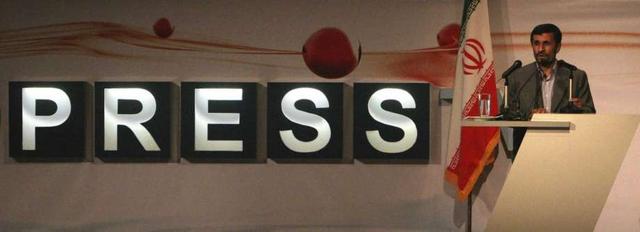 FILE—In this July 2, 2007, file photo, the then President Mahmoud Ahmadinejad delivers his speech during inauguration ceremony for Iran's first English-language channel, Press TV, as its logo is seen in background, in Tehran, Iran. less