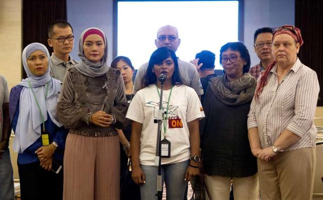 One of the relatives of passengers on board the missing Malaysia Airlines Flight 370 speaks to media after MH370 safety investigation report briefing in Putrajaya, Malaysia, Monday, July 30, 2018. A safety investigation report released more than four years after the mysterious disappearance of Malaysia Airlines Flight 370 failed to shed any new light but highlighted shortcomings in government response that exacerbated the mystery. Photo: Yam G-Jun, AP / Copyright 2018 The Associated Press. All rights reserved.