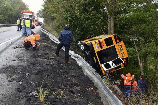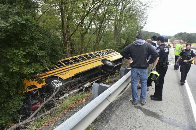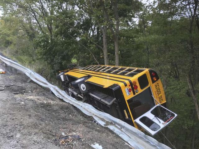 MARS, Pa. (AP) — Officials say some minor injuries were reported after a school bus carrying children ran over an embankment in a construction zone in western Pennsylvania and landed on its side.