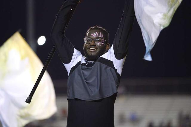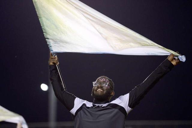 Silsbee's color guard performs with the band before the game against Hardin-Jefferson at Tiger Stadium on Friday night. Photo taken Friday 10/19/18 Ryan Pelham/The Enterprise