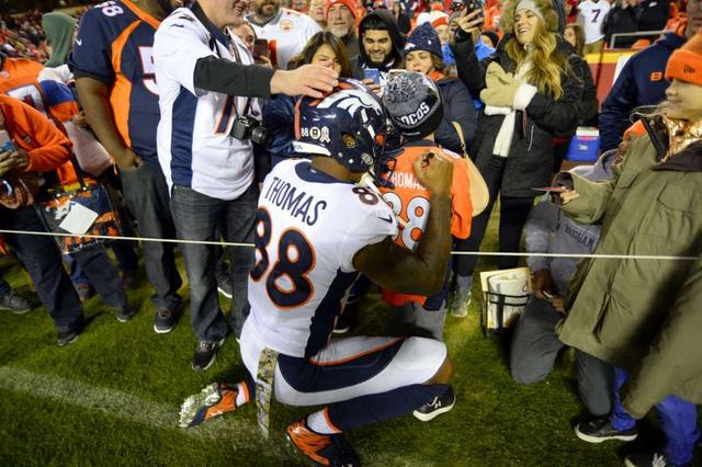 Thomas has played in 10 playoff games, including two Super Bowls. He had 13 catches for 118 yards and a touchdown in the Broncos’ loss to the Seahawks in Super Bowl XLVIII. He has 53 catches for 759 yards and six touchdowns in his 10 career playoff games. less