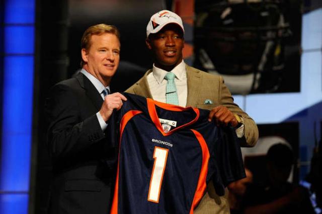 Thomas entered the draft after his redshirt junior season at Georgia Tech, but he broke his foot and couldn’t participate in drills at the NFL Combine. He still was taken at No. 22 overall, making him the first receiver taken, two spots before the Cowboys took Dez Bryant. The Texans took cornerback Kareem Jackson in that draft, two spots before the Broncos took Thomas. less