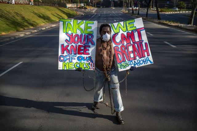 South Africa's leftist opposition party, the Economic Freedom Fighters, held anti-racism protests in Johannesburg, Pretoria and Cape Town over the death in the U.S. of George Floyd after a white police officer knelt on his neck.