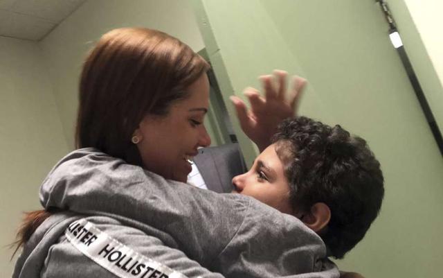 In this Tuesday, June 26, 2018 photo provided by paralegal Luana Mazon, Lidia Karine Souza, 27, hugs her 9-year-old son Diogo De Olivera Filho as Souza visited her son for the first time since they were separated at the U.S.-Mexico border in late May. Her son remained in custody, much of it quarantined in a room because he had the chicken pox, and she has been told the soonest the boy could be released is late July. She filed a lawsuit against the Trump administration. An emergency hearing is scheduled for Thursday. (Courtesy of Luana Mazon via AP) Photo: Luana Mazon, AP / Courtesy of Luana Mazon