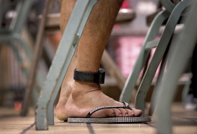 A migrant parent wears an ankle monitor bracelet above his donated flip-flops at the Annunciation House, Tuesday, June 26, 2018, in El Paso, Texas. Thirty-two parents separated from their children are staying at the home as they wait to be reunited with their children. If the Trump administration has any hope of complying with a judge's order to reunite thousands of migrant children and parents within 30 days, it's going to have to clear away the red tape and confusion many immigrants have encountered so far. Photo: Matt York, AP / Copyright 2018 The Associated Press. All rights reserved.
