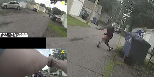 The city released the footage Sunday night. It shows Officers Ryan Kelly and Justin Schmidt chasing Thurman Blevins on foot June 23. Blevins was shot after the pursuit turned down an alley.