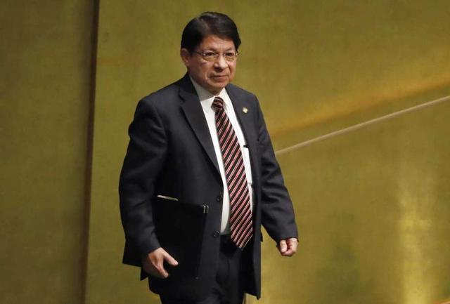 Nicaragua's Foreign Minister Denis Moncada Colindres walks to the podium to address the 73rd session of the United Nations General Assembly, at U.N. headquarters, Monday, Oct. 1, 2018.